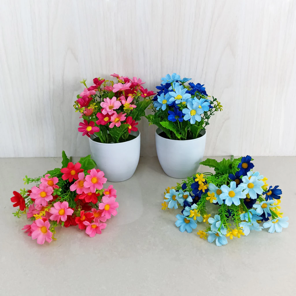 UNICO Tanaman Hias Plastik Bunga Anggrek Krisan Pot Bunga Artificial Dekorasi Bucket Hiasan PBP30